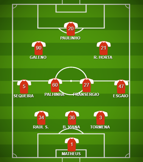 - Alternativas (SC Braga): João Novais; André Horta; Trincão.
