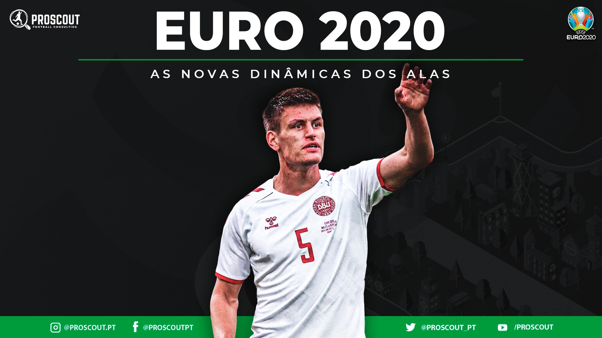 Joakim Maehle, de 24 anos e que atua na “fresca” Atalanta, tem demonstrado durante o Euro 2020 uma grande polivalência. É um lateral direito de origem que tem capacidade para jogar com o pé direito (o seu preferencial) ou pé esquerdo. Na seleção dinamarquesa atuou como ala esquerdo procurando fazer muitos movimentos interiores para assistir ou rematar direto à baliza, como aconteceu contra o País de Gales, em que foi o autor do 2-0.