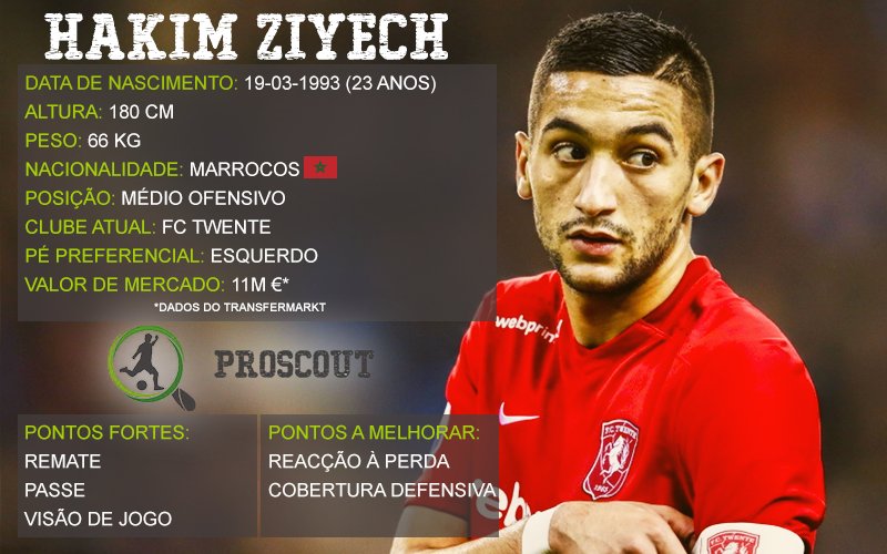 Com raízes marroquinas mas nascido na Holanda, em Drontem, provincia de Flevolândia, Hakim Ziyech é mais um produto da ligação futebolística entre Holanda e Marrocos que tem em Afellay, Boussoufa ou Boulahrouz outros exemplos. O Heerenveen foi o seu clube-pai, acolhendo-o nas suas equipas de formação, até deixá-lo partir, em 2014, para o Twente, numa altura em que já começava a dar nas vistas na Eredivisie com 9 golos e 10 assistências em 31 jogos em 2013/14. Rumou à cidade de Enschede para aí se tornar, nas duas épocas seguintes, no jogador mais decisivo da equipa e um dos mais excitantes da Liga Holandesa.