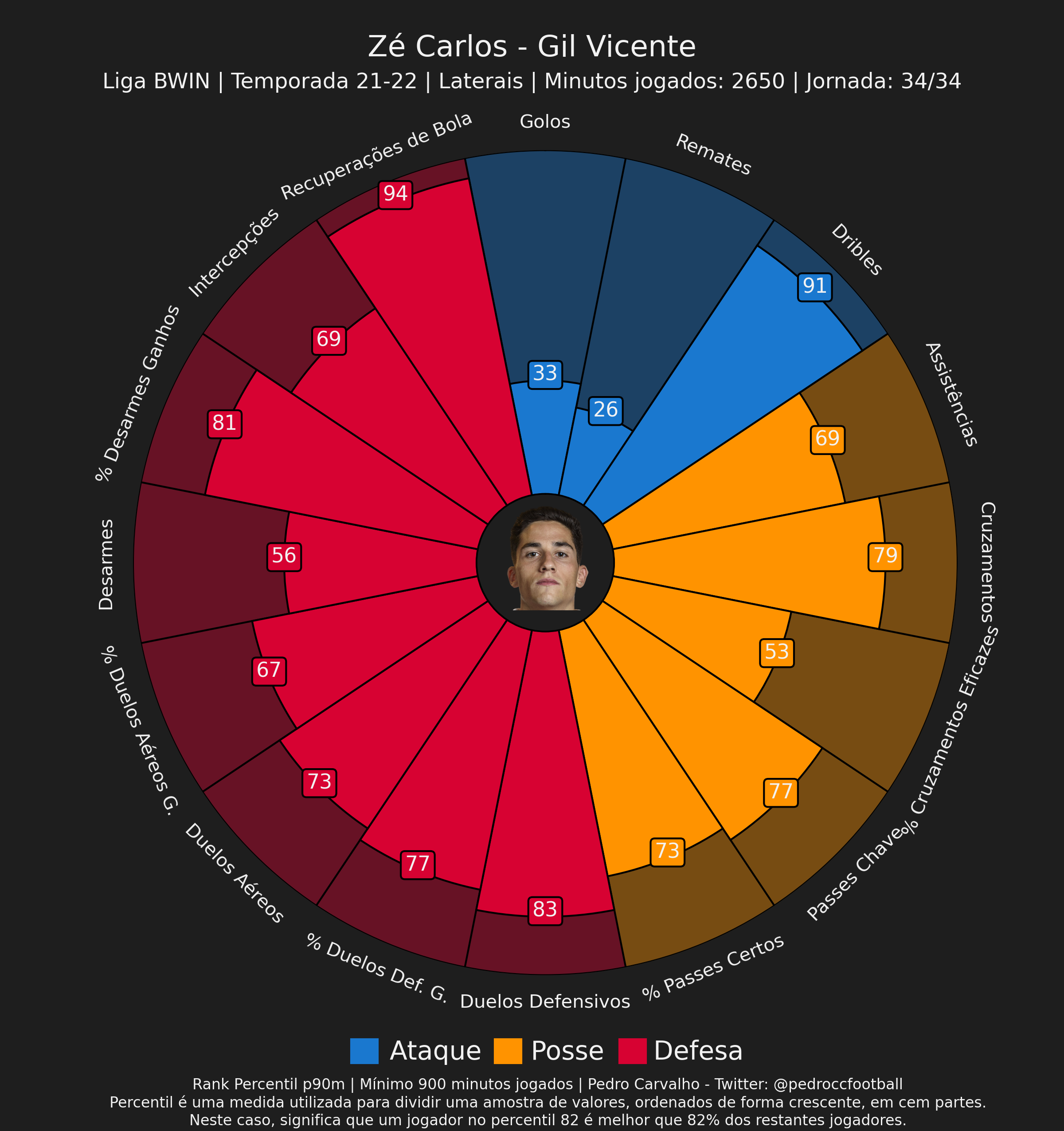 O jovem jogador é um lateral com um bom poder físico e muito competente quer a atacar quer a defender. É muito sólido e eficaz no momento ofensivo, revela qualidade a progredir a bola e na chegada ao último terço, mostra um bom passe e cruzamento e capacidade para fazer preencher bem o corredor. No momento defensivo, o lateral é muito seguro e competente ao nível do posicionamento e também dos duelos. Por fim, Zé Carlos é um lateral com muita qualidade, competente nos dois momentos do jogo e com qualidade para se afirmar no onze titular do SC Braga na próxima temporada.