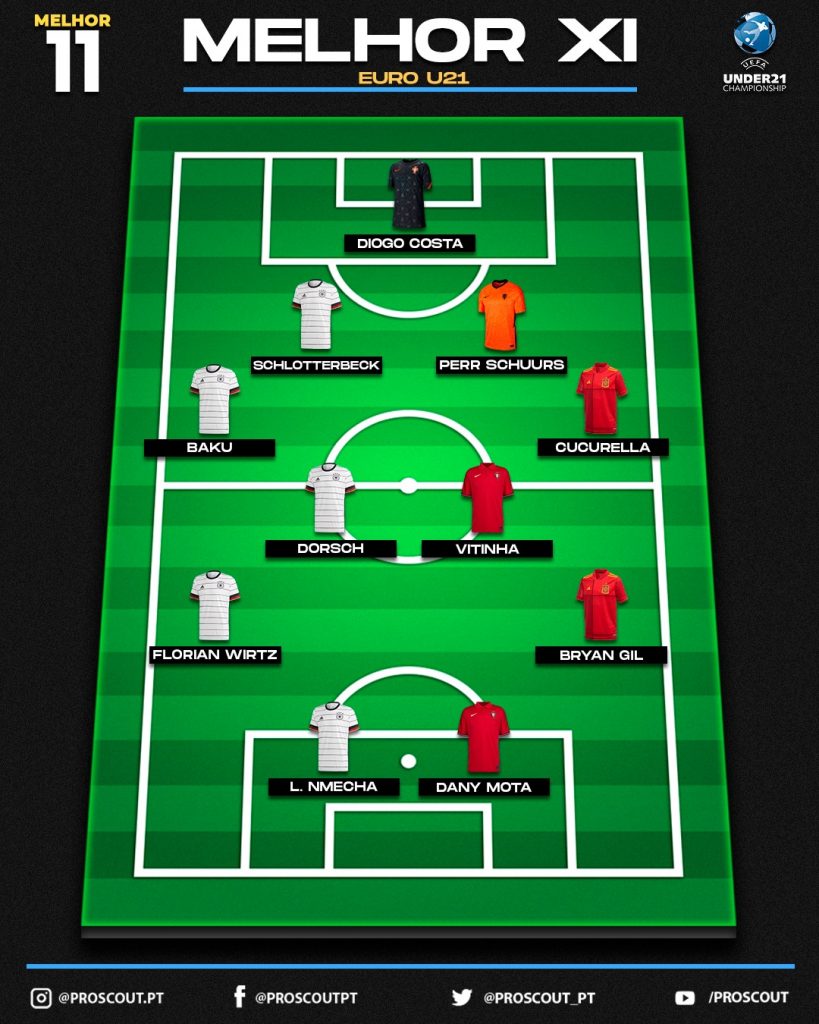 O jovem Português é o único que repete a presença neste XI do Euro Sub-21, estando presente tanto no melhor XI da fase de grupos como no melhor XI desta ultima fase.