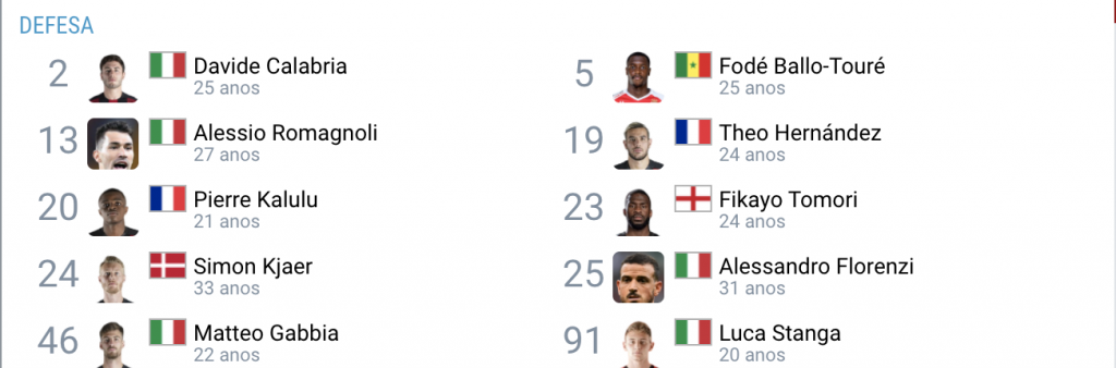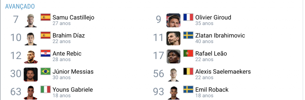 - Apresenta também jogadores na frente como Messias, Theo Hernández ou Rafael Leão que com espaço conseguem imprimir no jogo ofensivo, várias mudanças de velocidade letais com bola.
