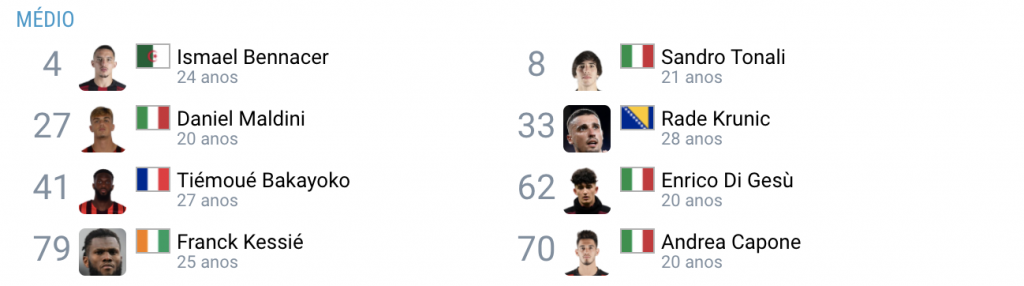 - No banco há ainda jogadores que normalmente entram nas segundas partes do jogo para mexerem com os jogos e para poderem dar ainda maior velocidade, discernimento e verticalidade ao jogo de transições ofensivas da equipa como: Saelemaekers, Rebic, Florenzi ou Samu Castillejo.