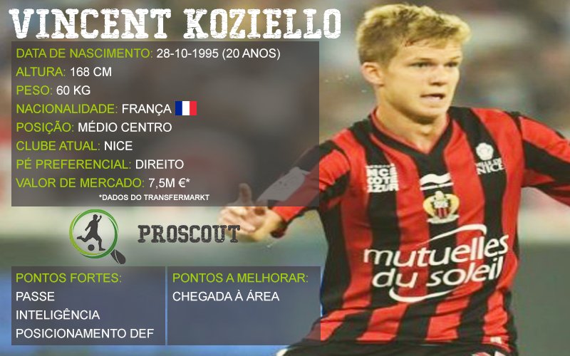 1,68m no BI, gigante dentro das 4 linhas. Poderia ser esta uma das frases utilizadas para descrever Vincent Koziello, o menino-prodígio do Nice. Nascido em Grasse, começou a sua formação no AS Cannes (clube por onde já passaram Zidane, Patrick Vieira, Jan Koller, entre outros) de onde partiu em 2013 para o seu atual clube. Fez a sua estreia na equipa principal em Novembro de 2014 e tem sido desde aí uma forte aposta por parte do clube francês.